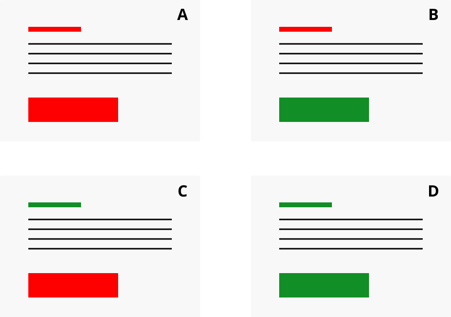 In such tests, it’s not clear what elements may be driving an improvement of a metric, but you can still gain valuable insights from the results. This approach is especially valuable when exploring different UI/UX systems that can’t be tested in a stepwise manner.